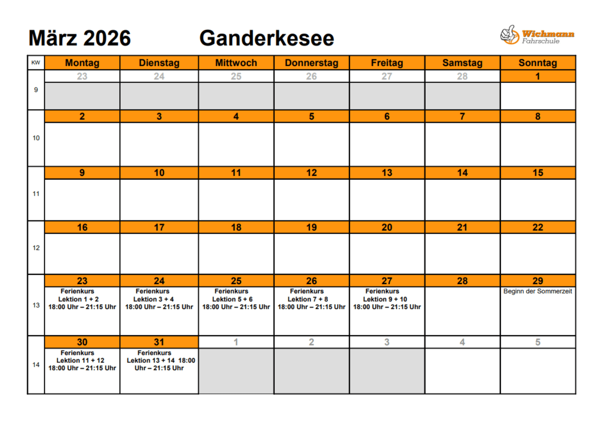 ACHTUNG: Ab Januar 2026 findet der Theorieunterricht wie folgt statt